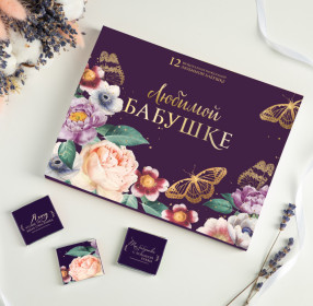 Набор 12 шоколадок "Любимой бабушке" (тёмный фиолетовый с цветами)