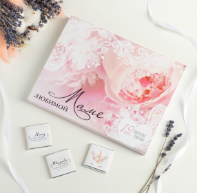 Набор 12 шоколадок "Любимой маме (цветы и кружево)"