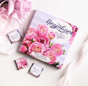 Набор 9 шоколадок "Поздравляем от всего сердца (розовые пионы)"