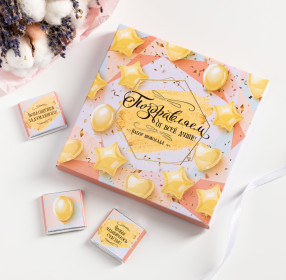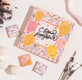 Набор 9 шоколадок "Поздравляем от всей души (розовый с воздушными шарами)"