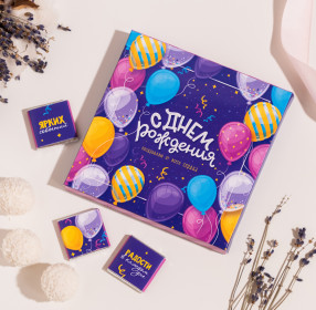Набор 9 шоколадок "С днем рождения (воздушные шары на фиолетовом)"