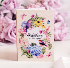 Открытка 4 шоколадки "Поздравляем от всего сердца (акварельные цветы и птицы)"