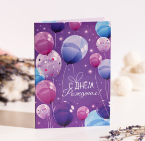 Открытка 4 шоколадки "С днем рождения (воздушные шары, фиолетовая)"