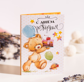 Открытка 4 шоколадки "С днем рождения (мишка с тортом, на белом)"