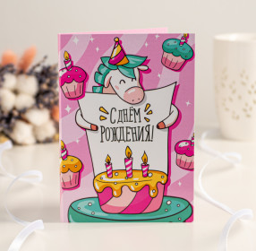 Открытка 4 шоколадки "С днём рождения(единорожек)"