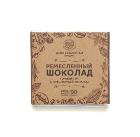 Шоколад горький, 72% на меду С кофе, ванилью, корицей, 90 г