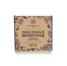 Шоколад горький, 72% на меду С орехом пекан, 90 г