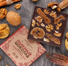 Шоколад горький, 72% какао, на меду, с инжиром и грецким орехом, 90 г