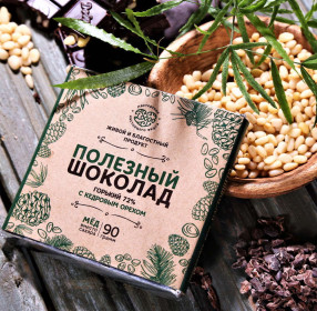 Шоколад горький, 72% какао, на меду, с кедровым орехом, 90 г