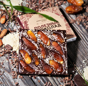 Шоколад горький, 72% на меду С фиником и кунжутом, 90 г