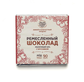 Шоколад молочный, 54% какао, на меду с брусникой и корицей, 90 г