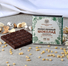 Шоколад молочный, 54% какао, на меду, с кедровым орехом, 90 г