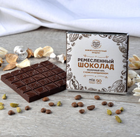 Шоколад молочный, 54% какао, на меду, с кофе и кардамоном, 90 г