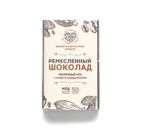 Шоколад молочный, 54% какао, на меду, с кофе и кардамоном, 50 г