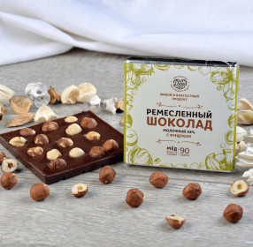 Шоколад молочный, 54% какао, на меду, с фундуком, 90 г