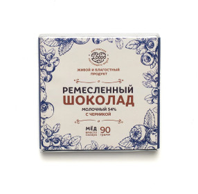 Шоколад молочный, 54% какао, на меду, с дикой черникой, 90 г