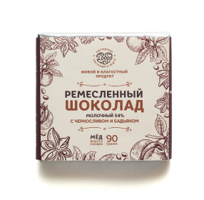 Шоколад молочный, 54% какао, на меду, с черносливом и бадьяном, 90 г