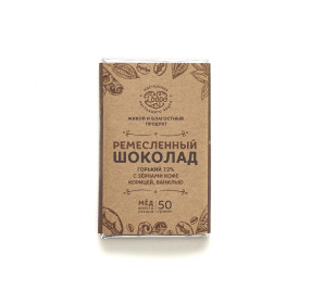 Шоколад горький, 72% на меду С кофе, ванилью, корицей, 50 г