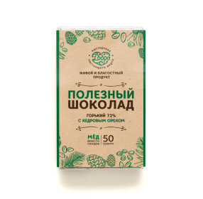 Шоколад горький, 72% какао, на меду, с кедровым орехом, 50 г