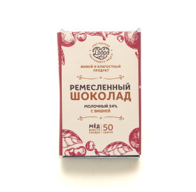 Шоколад молочный, 54% какао, на меду, с вишней, 50 г