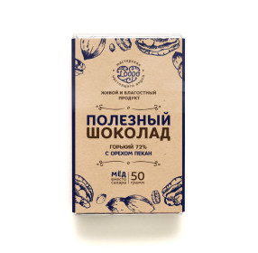 Шоколад горький, 72% на меду С орехом пекан, 50 г