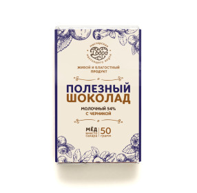Шоколад молочный, 54% какао, на меду, с дикой черникой, 50 г