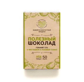 Шоколад горький, 72% какао, на меду, с фисташкой и гималайской солью, 50 г