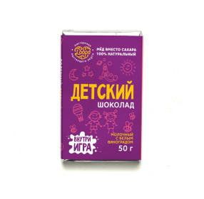 Детский шоколад молочный, 54% какао на меду с белым виноградом, 50 гр.