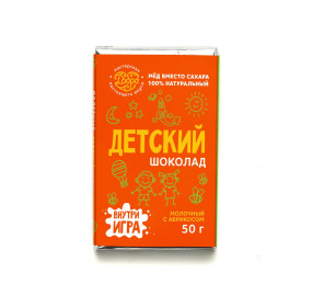 Детский шоколад молочный, 54% какао на меду с абрикосом, 50 гр.