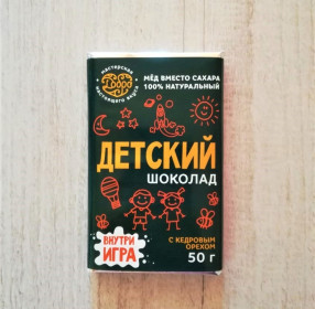 Детский шоколад молочный, 54% какао на меду с кедром, 50 гр.